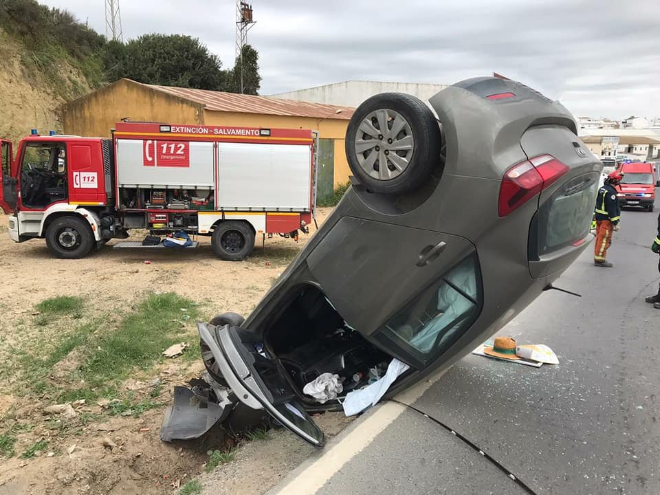 Los bomberos del Consorcio Provincial Bomberos Huelva del parque de San Juan del Puerto, han intervenido esta misma mañana sobre las horas 10:30 horas aproximadamente, en una salida de vía de un vehículo en la localidad de Moguer.