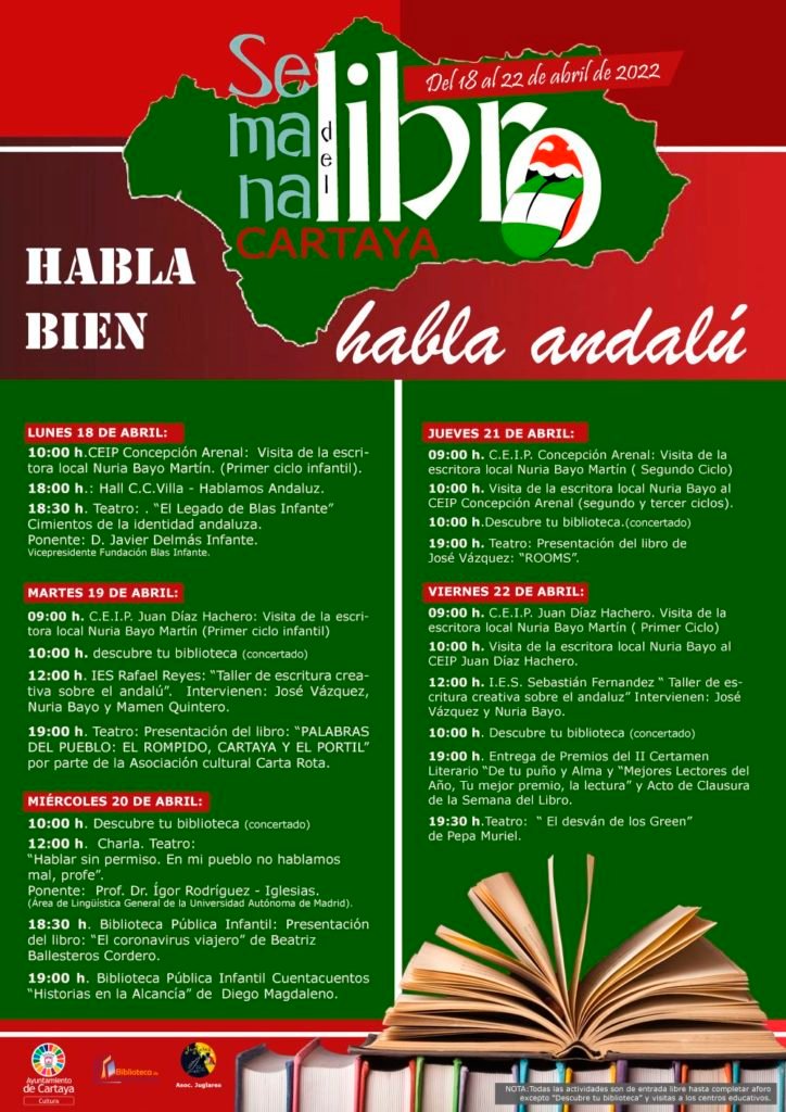 Con el lema ‘Habla bien, habla andalú’, la iniciativa municipal, que se desarrolla por segundo año consecutivo después del gran éxito obtenido en la primera edición, se desarrolla durante cinco días, entre el 18 y el 22 de abril, y comprende la realización de un total de 24 actividades culturales entorno al libro y al andaluz.