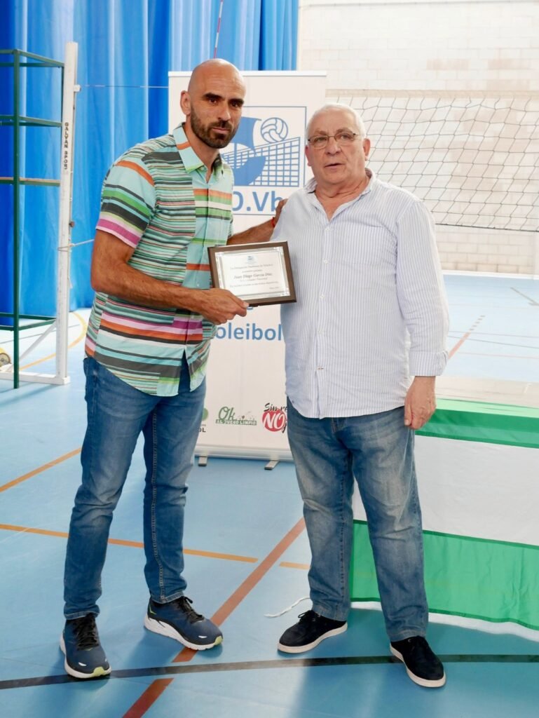 Otro onubense reconocido en esta clausura de la temporada ha sido el entrenador Juan Diego García Díaz, seleccionador nacional femenino, entrenador del CV Haris, con el que se ha proclamado campeón de la Copa de la Reina, campeón de la Superliga Femenina y subcampeón de la CEVChallengeCupW.
