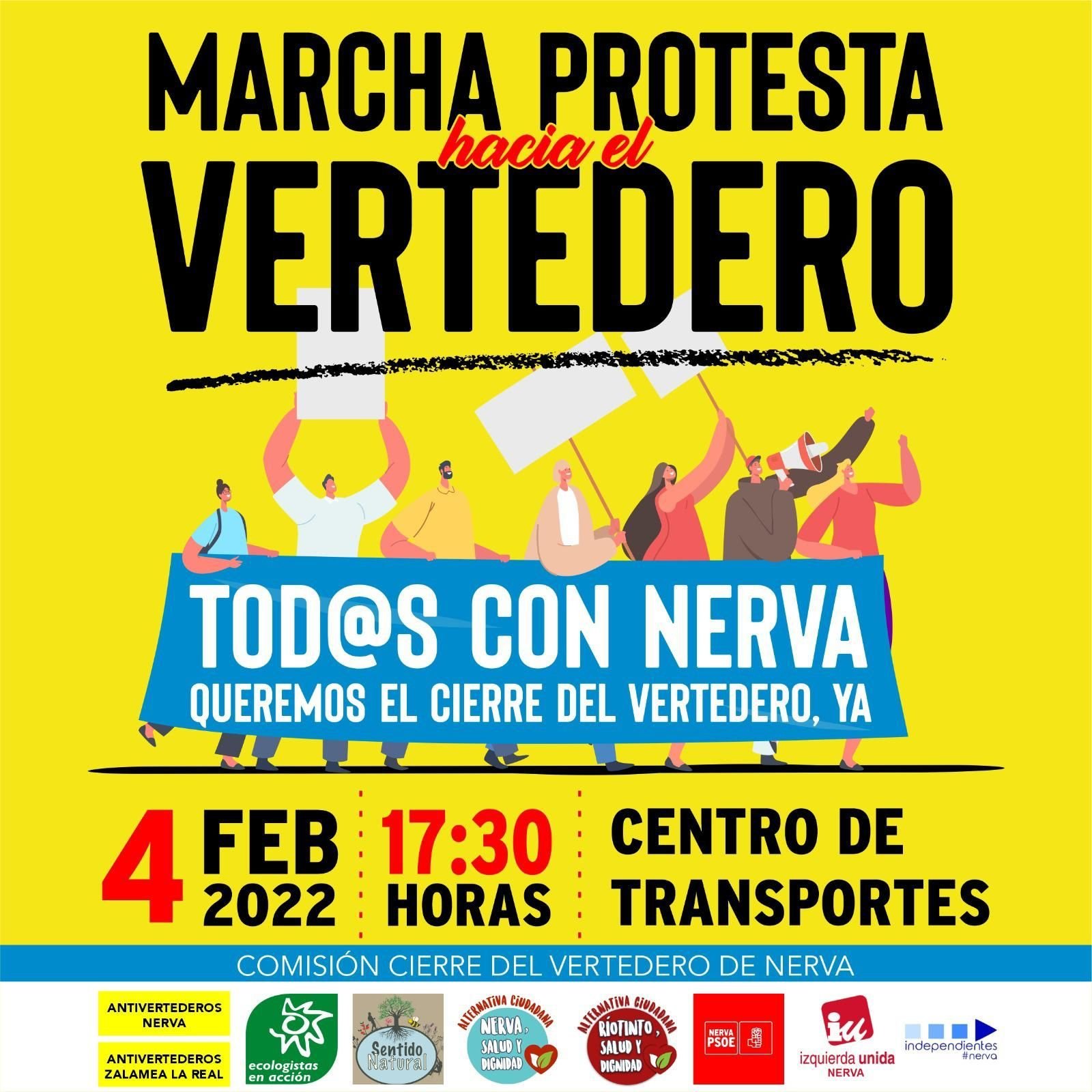 La comisión convocante está formada por una decena de organizaciones sociales y políticas de la Cuenca Minera de Riotinto, concretamente las plataformas Nerva Salud y Dignidad, Riotinto Salud y Dignidad, Anti Vertederos Nerva y Anti Vertederos Zalamea, Ecologistas en Acción, PSOE Nerva, Izquierda Unida Nerva; Independientes Nerva y Sentido Natural de Berrocal.