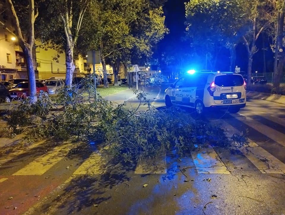 Una vez despejada la vía observan como la copa de dicho árbol y con motivo del fuerte viento reinante se encontraba balanceándose de tal forma que podía volver a arrojar sobre la vía más restos y de envergadura por lo que los agentes deciden cortar el tráfico tanto de vehículos como de peatones en la zona con el fin de asegurar la integridad física de las personas y dar de inmediato aviso a los compañeros del Cuerpo de Bomberos del Consorcio Provincial, los cuales nuevamente tras valorar la situación, procedieron al corte y retirada de las ramas más peligrosas.
