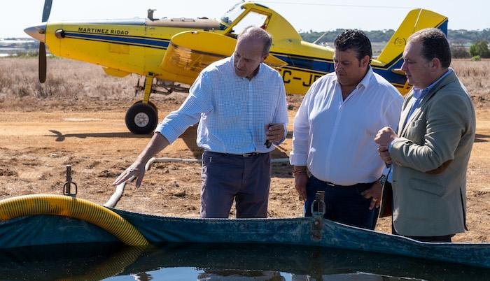El presidente de la Diputación de Huelva, David Toscano, ha asistido este viernes al inicio de la campaña de agosto con medios aéreos del Servicio de Control de Plagas de la institución provincial para el tratamiento contra las larvas de los mosquitos.