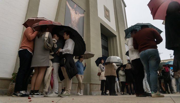 Ninguna de las cuatro procesiones previstas para el Domingo de Ramos pudo salir por los malos augurios del tiempo y el aguacero que cayó desde las 17.00 horas