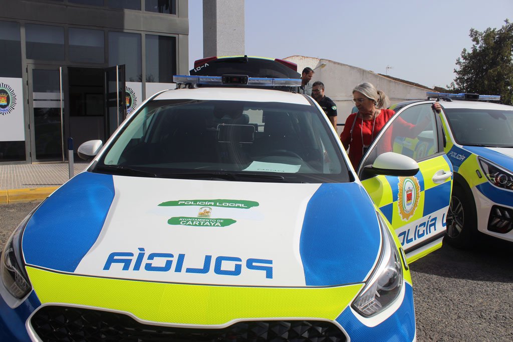 La Policía Local de Cartaya cuenta desde este viernes, para desarrollar su labor, con dos nuevos vehículos híbridos, perfectamente equipados, que incorporan las más modernas tecnologías, homologados según la normativa europea y dotados con desfibriladores, mamparas de seguridad, kit de detenidos, extintores y todos los dispositivos que exige la Ley, incluida la nueva rotulación de alta visibilidad que exige la Unión Europea.