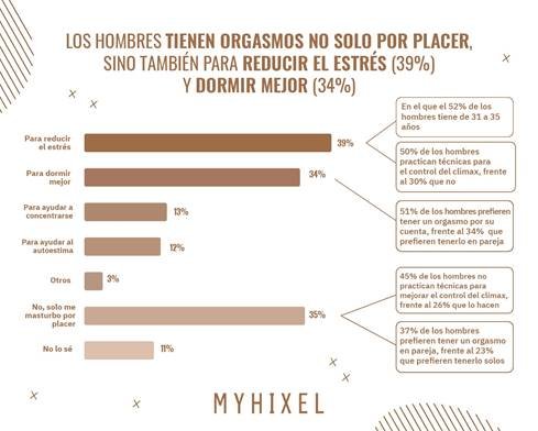 Preguntados si, aparte del placer, existe alguna razón por la cual se masturban y experimentan el orgasmo, el 40% de los encuestados reconoce que se masturba porque el orgasmo alcanzado les ayuda a reducir el estrés, mientras que un 34% reconoce que les ayuda a dormir mejor. Además, un 35% de los encuestados confiesan que practican el onanismo con el único objetivo de experimentar placer.