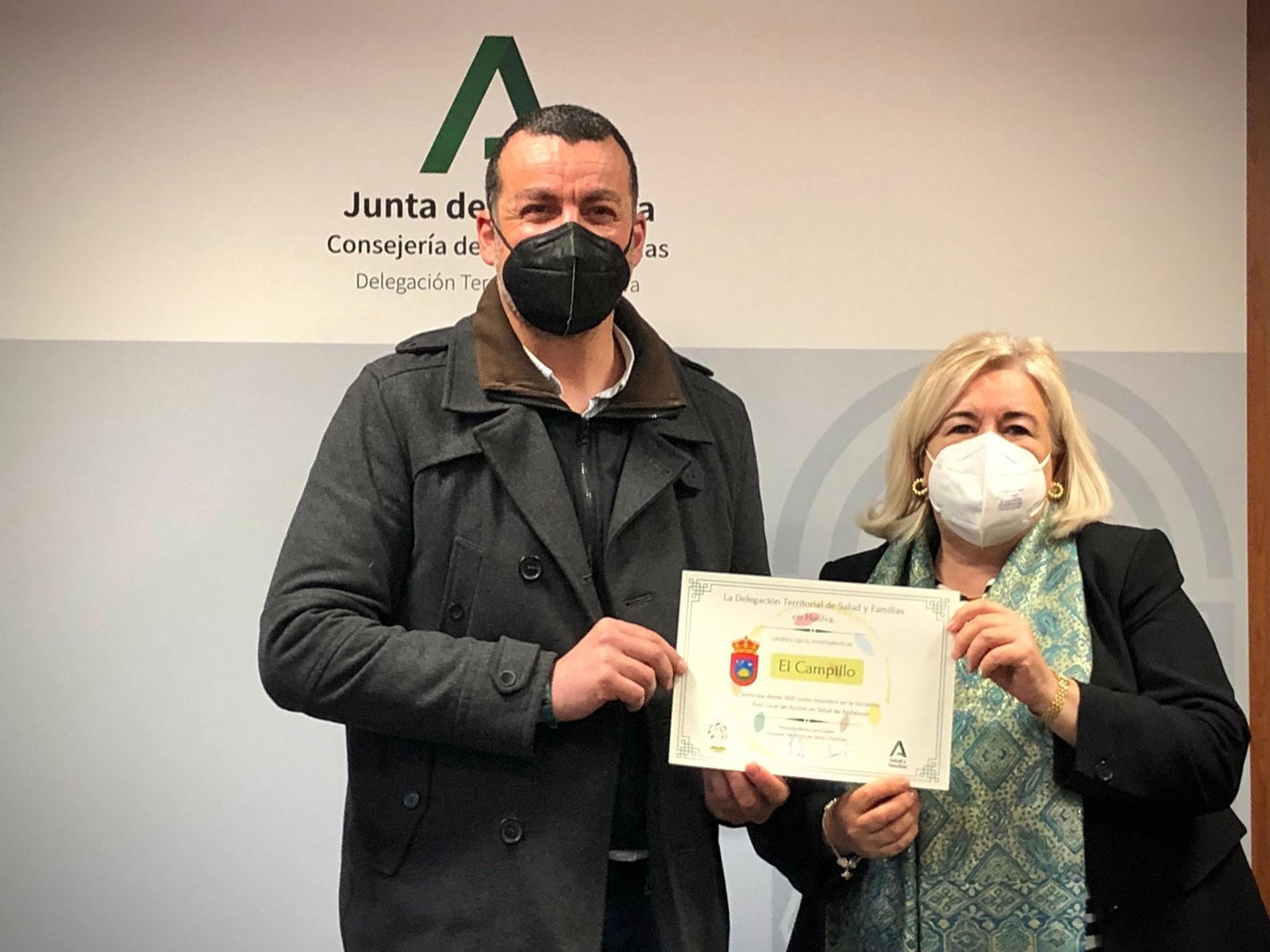 La delegada territorial de Salud y Familias, Manuela Caro, ha suscrito con el alcalde de El Campillo, Juan Carlos Jiménez, la adhesión de estos municipios a la Red Local de Acción en Salud de Andalucía (RELAS). Proyecto impulsado por la Dirección General de Salud Pública y Ordenación Farmacéutica de la Consejería de Salud y Familias que impulsa que el desarrollo a nivel municipal de actuaciones de prevención, protección y promoción de hábitos de vida saludable.