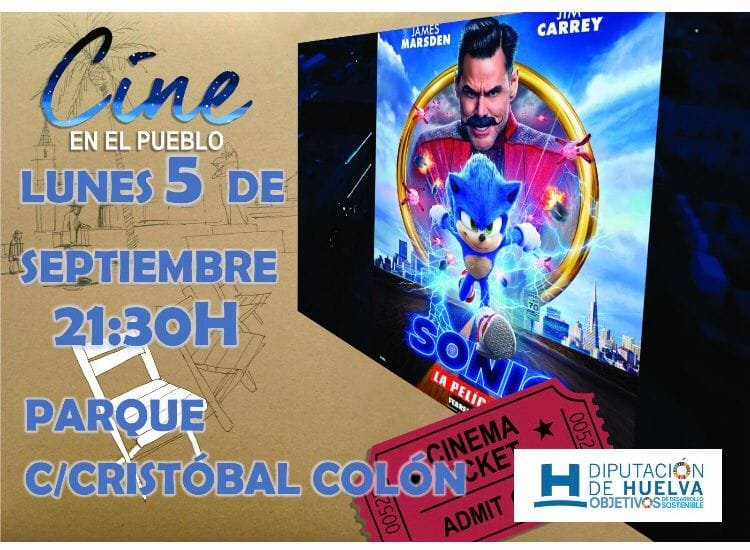 El programa ‘Cine en el pueblo’ continúa su andadura por la provincia de Huelva y llegará a Campofrío este lunes. Se proyectará Sonic 2 a partir de las 21.30 horas en el Parque de la calle Cristóbal Colón.