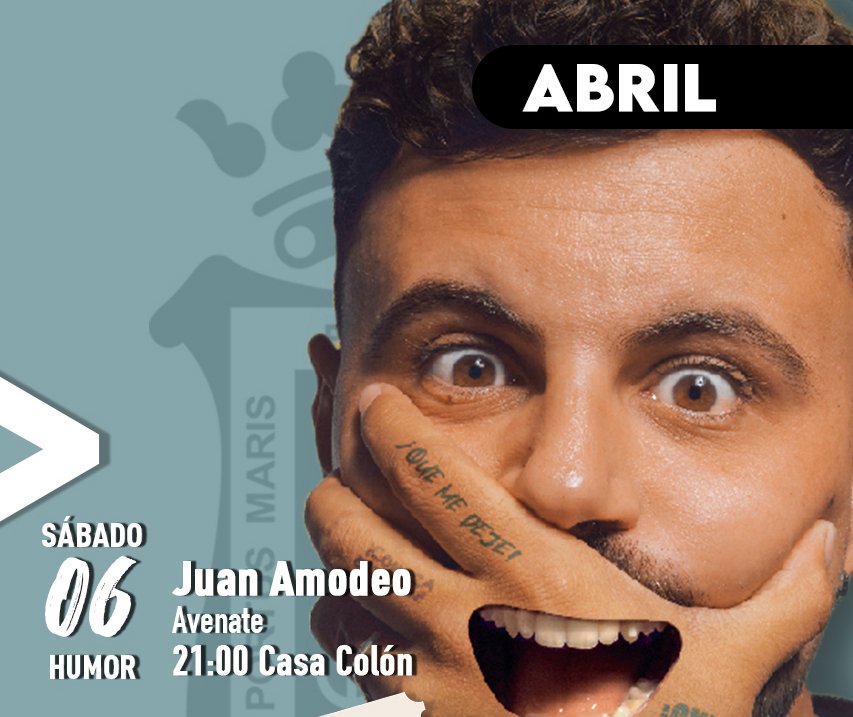 Así, el próximo sábado Juan Amodeo desembarcará en la Casa Colón, a partir de las 21.00 horas, para presentar al público onubense su nuevo show ‘Avenate’. Un espectáculo que promete muchas risas con los arrebatos de locura del artista, en el que mezclará improvisación con el público, anécdotas reales que parecen inventadas, otras inventadas que parecen reales, un texto ácido e irónico y alguna que otra sorpresa única para la su actuación en la capital onubense.