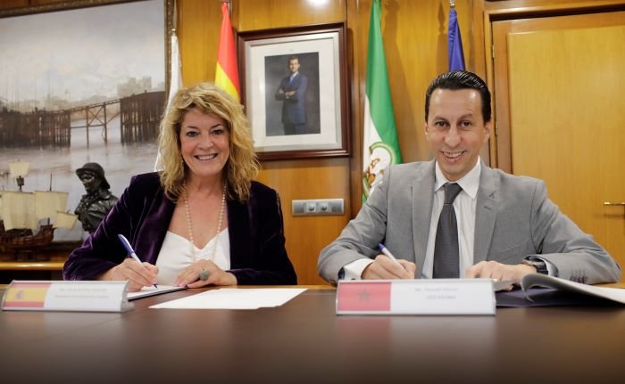 El Puerto de Huelva ha dado este miércoles un nuevo paso para reforzar sus relaciones con los puertos de Marruecos desde el punto de vista tecnológico, comercial y operacional, adelantándose así a la puesta en marcha de futuras conexiones marítimas directas desde el puerto onubense con el país vecino. En este contexto, la presidenta del Puerto de Huelva, Pilar Miranda, ha firmado hoy un protocolo de actuaciones para el estudio y potencial desarrollo de procesos de digitalización de las cadenas marítimo-portuarias con Youssef Ahouzi, CEO de PORTNET S.A. (Ventanilla Única Nacional de Trámites de Comercio Exterior de Marruecos).