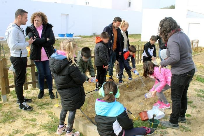 Una treintena de niños y niñas de tercero de primaria del CEIP ‘Virgen del Carmen de El Rompido’, han participado esta mañana en el taller de conciencia ecológica que se ha desarrollado en el Huerto Social que el Ayuntamiento de Cartaya ha creado en una parcela situada junto al centro escolar.