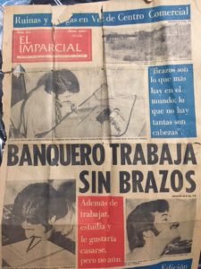 El balance de todos estos años es muy positivo, porque asegura que “he logrado más de lo que pude imaginar en mi vida. Aquí me hice locutor, periodista, publicista y empresario de espectáculos. He ganado mucho dinero y vivo la vida bien. No me puedo quejar. La vida me quitó los brazos, pero me ha dado mucho más de lo que me quitó. A los 12 años era completamente analfabeto y a los 24 era director y editor de mi propia revista”.