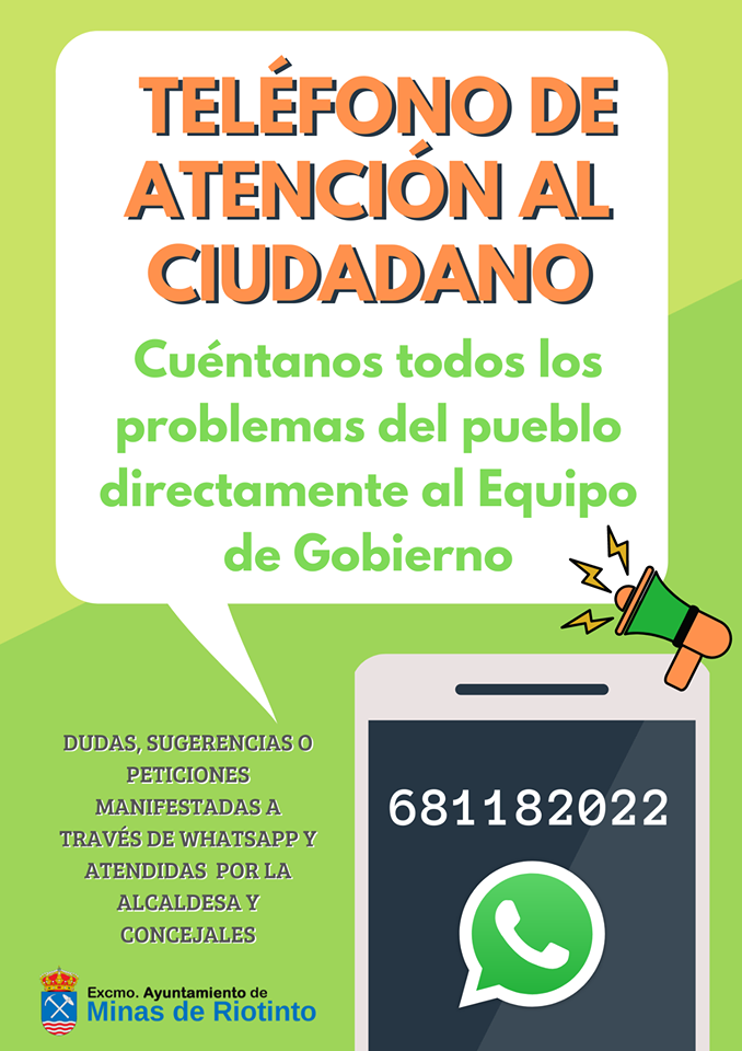 Los vecinos y vecinas de Minas de Riotinto tienen desde este jueves un número de teléfono a su disposición para comunicar sugerencias, dudas o peticiones de cualquier índole que conciernan al municipio.