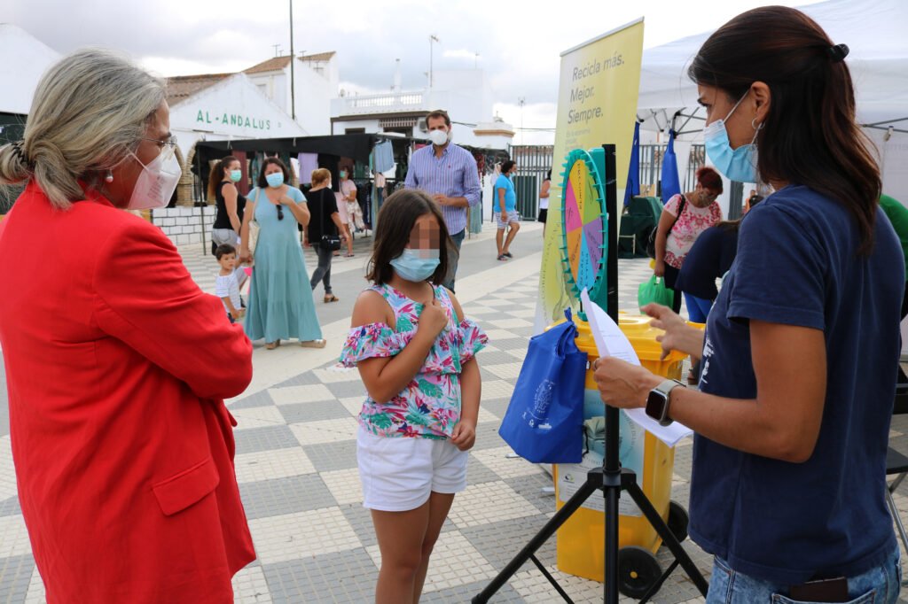 El mercadillo de Cartaya ha sido la primera parada en el núcleo urbano de la campaña de reciclaje que el Ayuntamiento de la localidad ha puesto en marcha, en coordinación con Ecoembes, “para informar y concienciar a la ciudadanía de la importancia de promover la reutilización de los residuos y el reciclaje como un hábito cotidiano en nuestro modo de vida”.