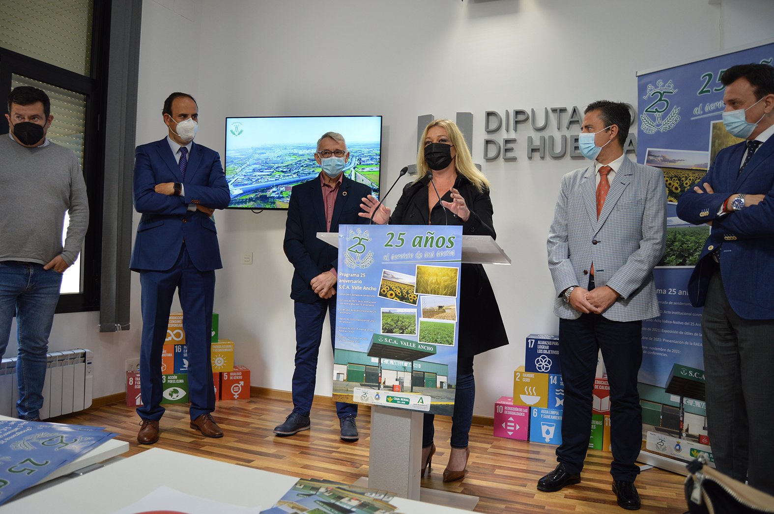 La Sociedad Cooperativa Andaluza “Valle Ancho” cumple este año su XXV Aniversario de su creación. Para ello, la Diputación Provincial de Huelva ha acogido hoy la presentación del programa de actos que reune desde una jornada de senderismo el próximo día 24 de abril, al acto institucional conmemorativo el 12 de julio, un acto lúdico festivo el 17 de julio, una exposición de útiles de labranza para agosto o un ciclo de conferencias para otoño.