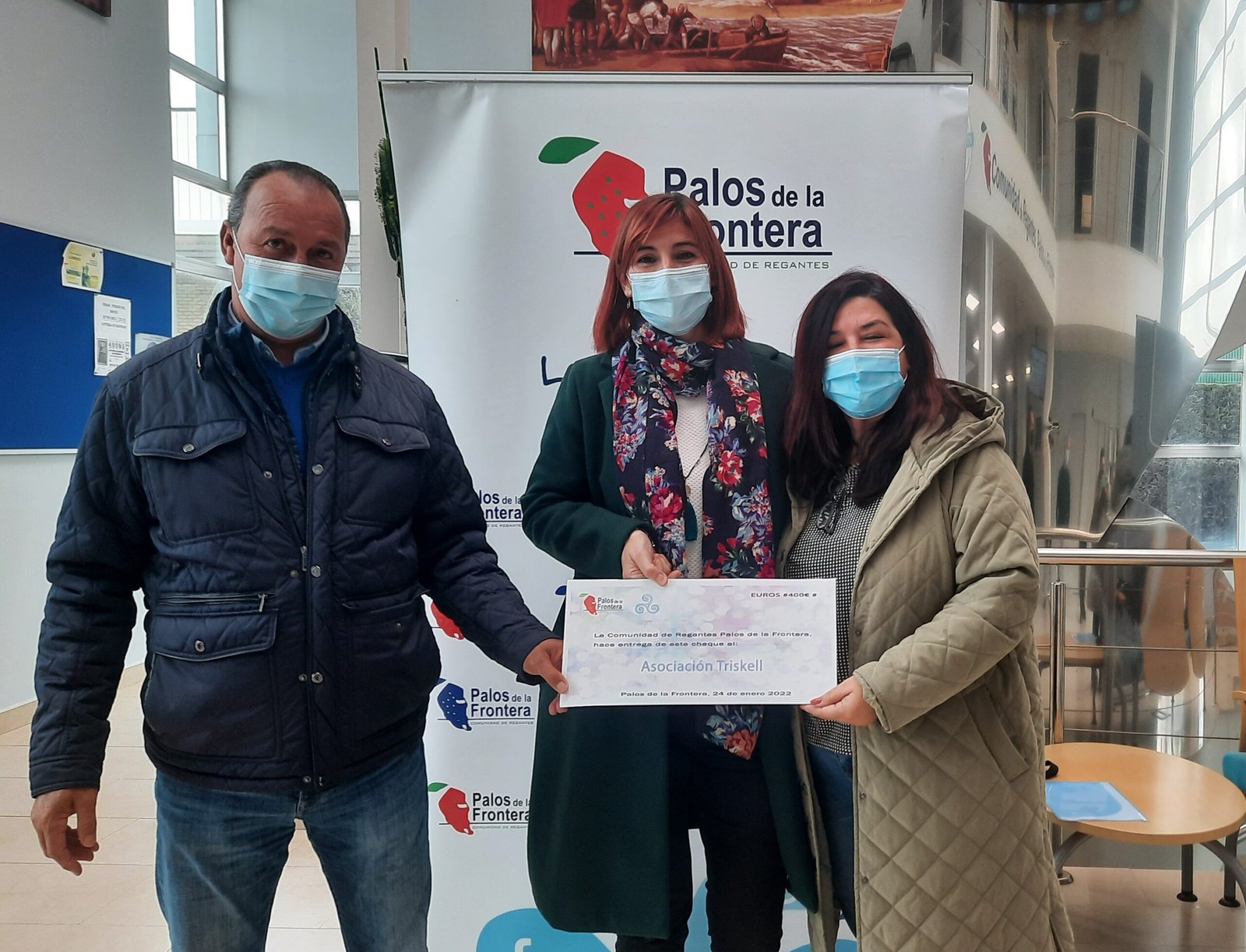 La Comunidad de Regantes ha donado el premio obtenido como ganador del último concurso de belenes organizado en el municipio de Palos de la Frontera  a la Asociación Triskell que desde hace más de una década trabaja con menores en casas de acogida a través de la Junta de Andalucía.