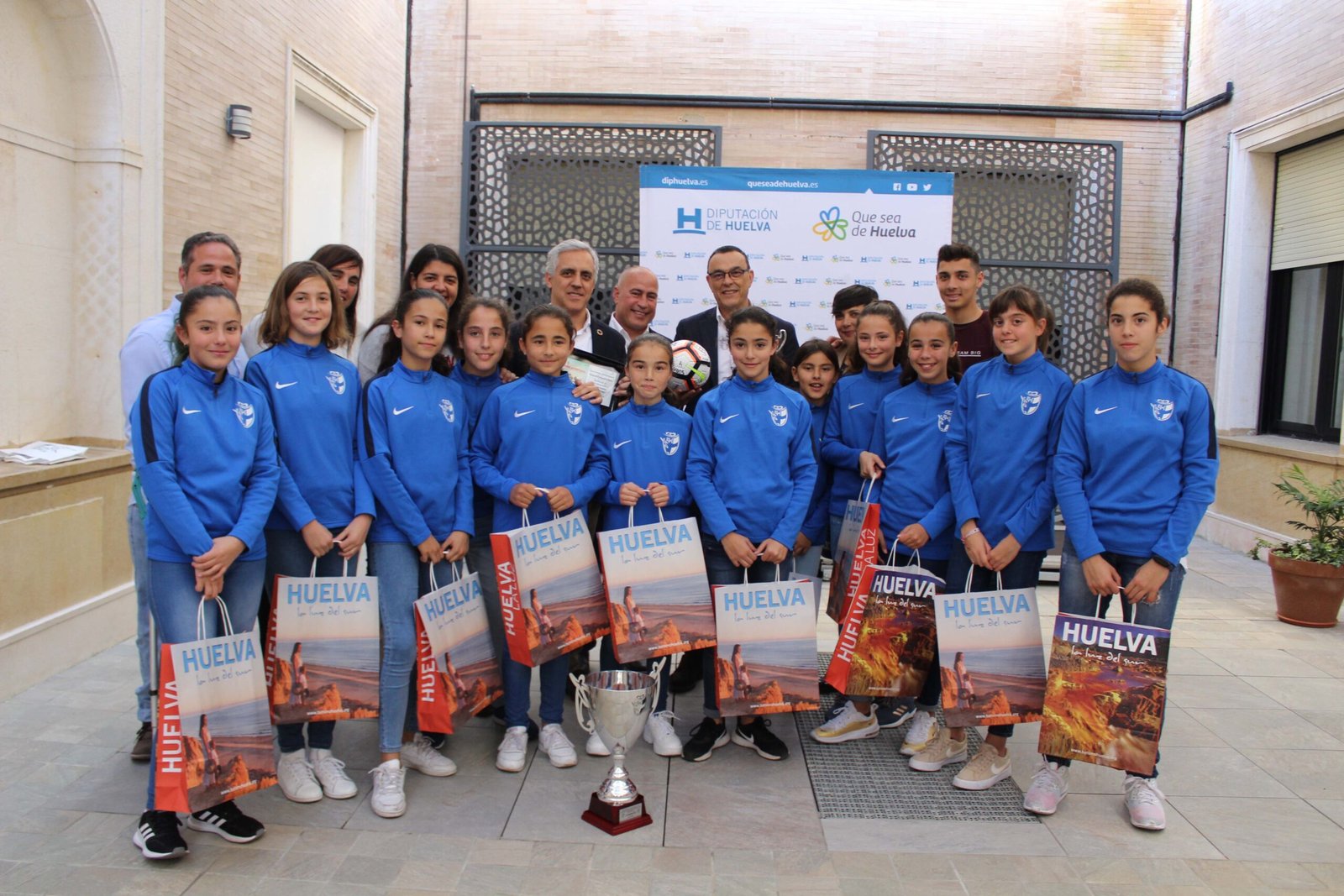 El conjunto, entrenado por Federico Vaz y formado por niñas de entre 9 y 12 años, completó un magnífico torneo con pleno de victorias y tan solo cinco goles encajados. Antes de vencer en la final a la selección de Sevilla, el equipo onubense se impuso en la fase de grupos a Almería (3-1), Córdoba (5-3) y Granada (3-0).