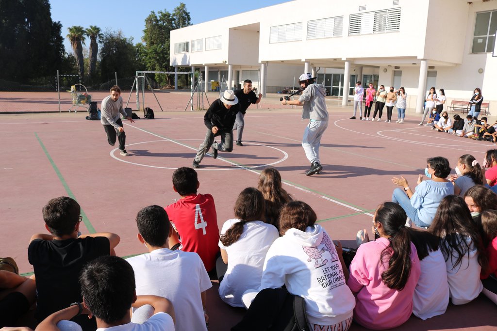 También los alumnos y alumnas del Instituto de Enseñanza Secundaria ‘Rafael Reyes’ han podido disfrutar de la danza urbana de la Nueva Escuela de Danza, Dan Danza, que mañana también recalará en el IES Sebastián Fernández.