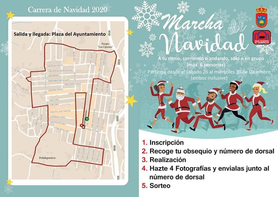 La localidad de El Campillo no va a renunciar a la marcha de Navidad que protagonizan sus vecinos pese a la crisis del Coronavirus. Por ello, un año más la ha organizado aunque competir sea lo de menos. Se anima a participar en el recorrido cada uno a su ritmo, ya sea corriendo o andando, sólo o en grupo (máximo 6 personas por grupo).