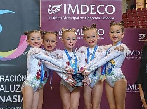 El equipo de la pequeña Inés, conocido a nivel andaluz como ‘las pitufas’, fue el primer clasificado en tierras cordobesas en la categoría Prebenjamín Precopa, a la que esta jovencísima gimnasta ascendió este mismo año tras una temporada, la de 2018, en la que ya fue subcampeona de Andalucía en categoría Premini.