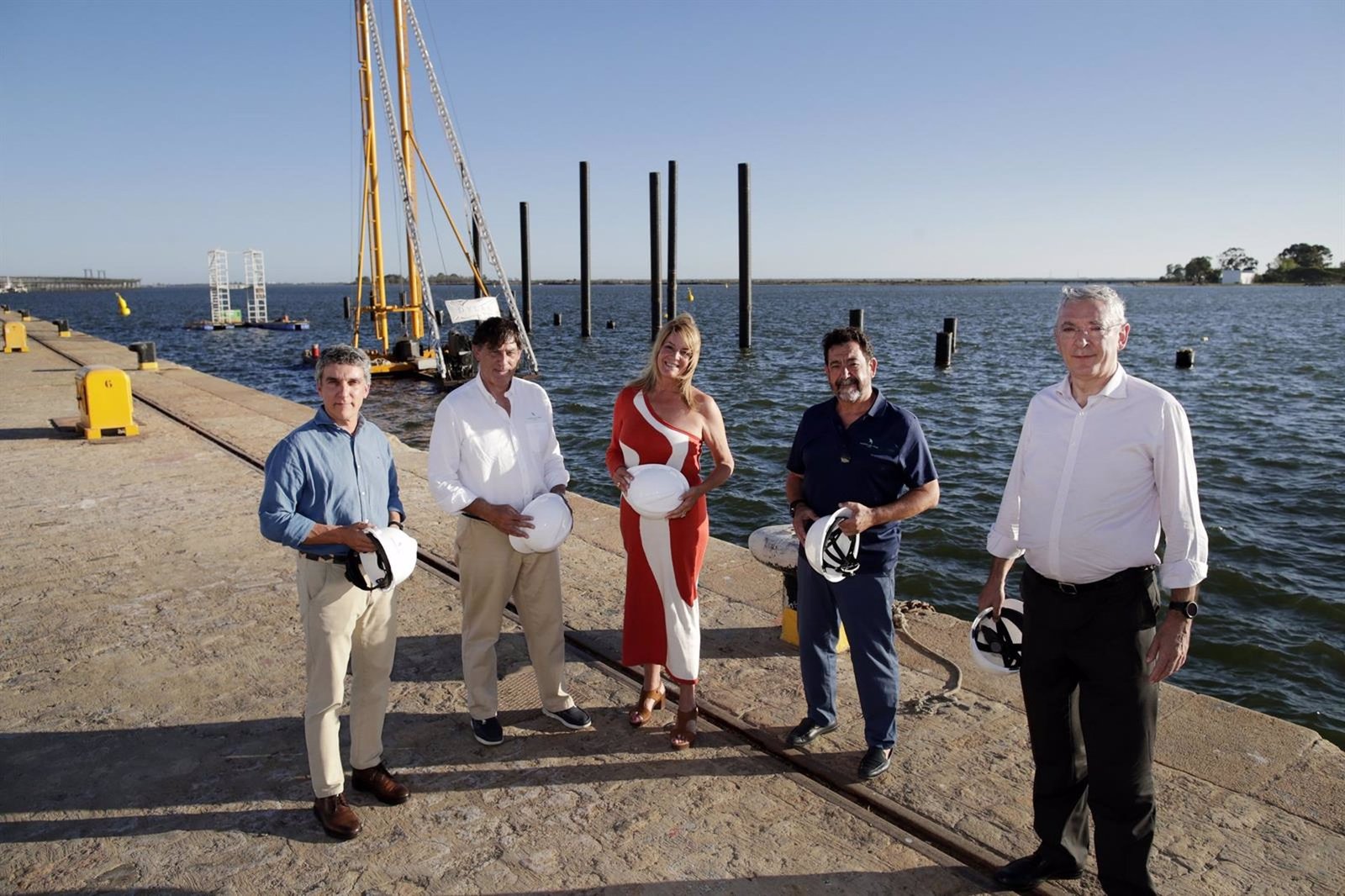 La presidenta del Puerto de Huelva ha visitado las obras junto con el director de la Marina del Odiel, Luis Enguita, el director del Puerto de Huelva, Ignacio Álvarez-Ossorio, y el jefe de Dominio Público Portuario, César Vera.