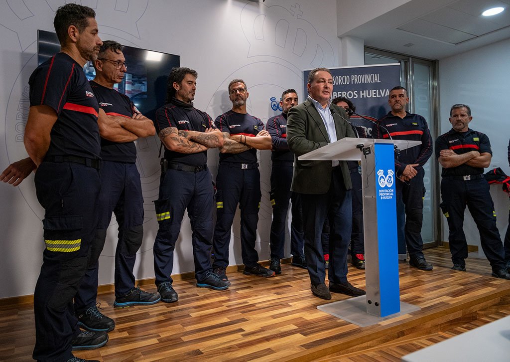 Toscano ha asegurado que “conscientes de la gravedad de la situación y de la preparación de nuestra plantilla, facilitamos la misión y pusimos los medios necesarios para que pudieran salir rumbo a Valencia en cuanto pasara la DANA que mantuvo en aviso rojo a la provincia de Huelva”. En estos días, ha añadido Toscano, “los hemos visto en Bonaire (Aldaia), en Catarroja, en cada lugar en el que su presencia ha sido requerida por necesaria. Hemos sido testigos de su humanidad, de su cercanía y del prestigio que les precede por su enorme profesionalidad, que conocemos sobradamente y que valoramos tanto en esta provincia”.