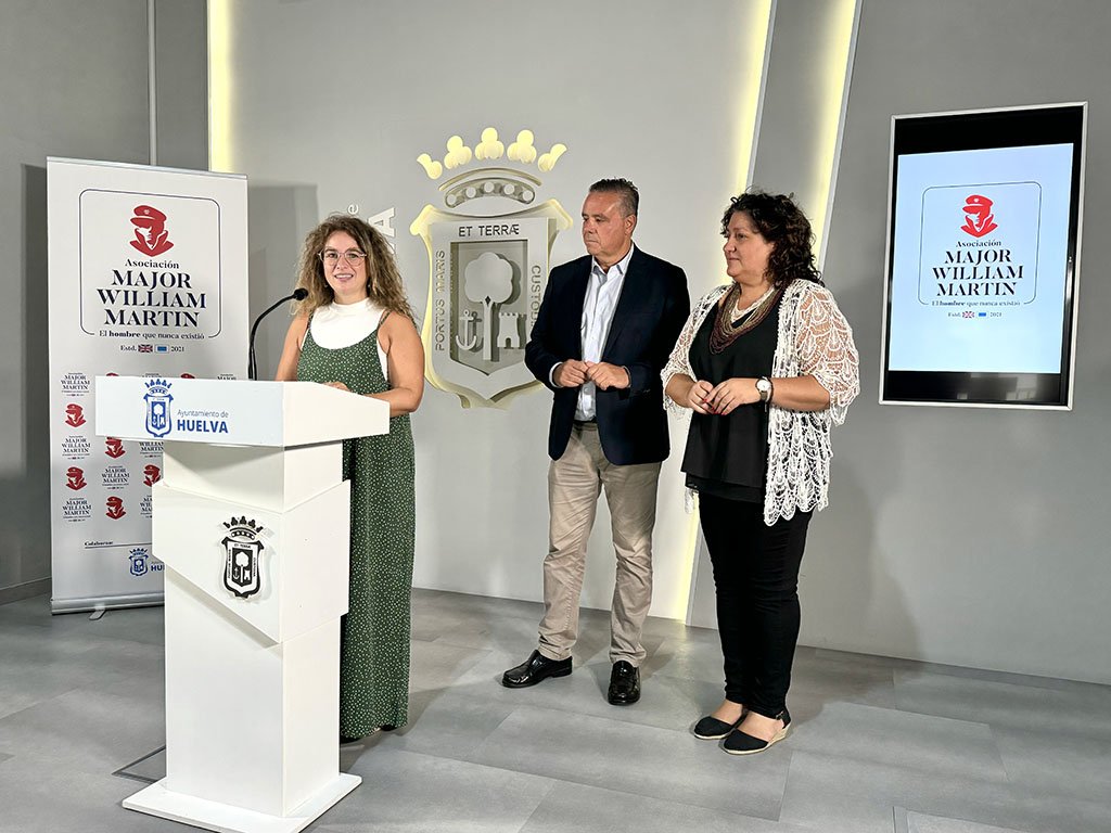 El Ayuntamiento de Huelva ha sido el marco elegido por la Asociación Major William Martin para presentar su nueva página, dedicada a difundir la historia de ‘El hombre que nunca existió”, que ha corrido a cargo de la concejal de Turismo, Comercio, Salud y Consumo, Pastora Giménez; y el presidente de la asociación, Leopoldo Sánchez.