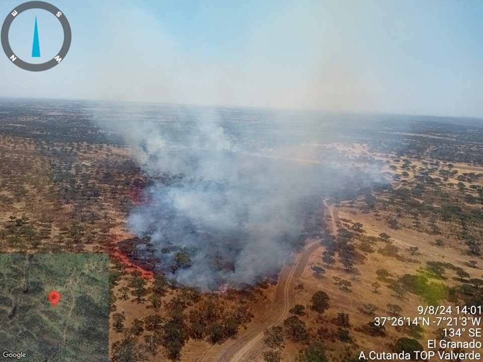 Efectivos del Servicio de Extinción de Incendios Forestales de Andalucía (Plan Infoca) trabajan en un incendio declarado en la tarde de este viernes en el término municipal de Villanueva de los Castillejos, concretamente en el paraje Cumbre Gorda, a donde en un primer momento, pasadas las 13.30 horas, se desplazaron un helicóptero semipesado, dos aviones de carga en tierra, un grupo de bomberos forestales, un técnico de operaciones, un agente de medio ambiente y dos vehículos autobombas.