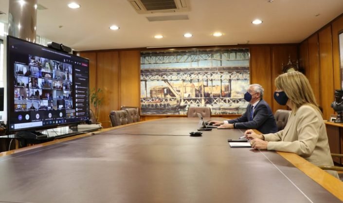 La presidenta de la Autoridad Portuaria de Huelva, Pilar Miranda, ha asistido hoy junto al director de la entidad, Ignacio Álvarez-Ossorio a la reunión del Comité de Distribución del Fondo de Compensación Interportuario en el que se han aprobado 500.000 euros de ayudas públicas al Fondo “Puertos 4.0” en el marco del “Plan de Impulso al emprendimiento para la innovación en el sector portuario”, a un total de 33 ideas.