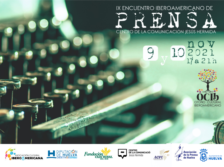El Centro de la Comunicación Jesús Hermida acogerá el próximo 9 y 10 de noviembre el IX Encuentro Iberoamericano de Prensa organizado por la Asociación Cultural Iberoamericana (promotora del OCIb), la Asociación de la Prensa de Huelva, la Asociación de Corresponsales de Prensa Iberoamericana (ACPI) y que traerá hasta la capital onubense a diferentes profesionales de prestigio del ámbito del periodismo y el fotoperiodismo para debatir sobre ‘El consumo de comunicación y cultura durante la pandemia de covid 19’