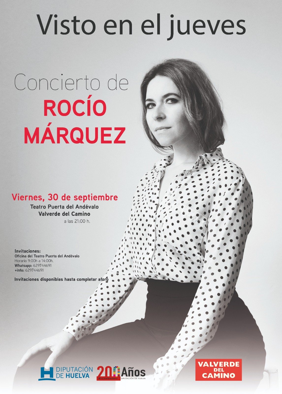 El Teatro municipal de Valverde del Camino acoge este viernes un concierto de la cantaora onubense Rocío Márquez, que desgranará sobre el escenario los temas de su último disco ‘Visto en el Jueves’. Este concierto forma parte de las actividades que conmemoran el Bicentenario de la constitución de la primera Diputación Provincial de Huelva, impregnadas de un marcado carácter cultural.