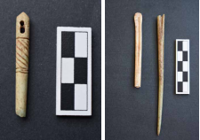 En hueso labrado, durante las excavaciones se han encontrado alfileres (aci crinalis) para elaborar peinados o sujetar vestimentas, según época y posición social, así como agujas (aci) y punzones (subulae) destinados a la artesanía textil, además de lígulas y espátulas para el aseo o uso quirúrgico y como aplicador de perfumes y ungüentos o para limpieza de los oídos.