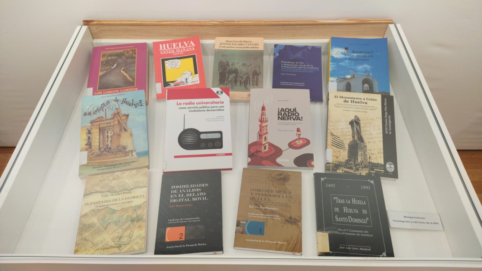 La exposición ‘Libros desde la pluma crítica’, que recoge 55 obras de periodistas onubenses y ediciones de la Asociación de la Prensa de Huelva, se divide en siete vitrinas separadas en función de la temática: ficción, entrevistas, reportajes adaptados a novela, crónica histórica o actualidad, entre otras.