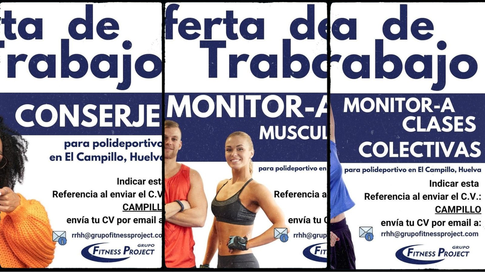 El Grupo Fitness Proyect ha lanzado tres ofertas de empleo para cubrir en el Polideportivo Municipal de El Campillo. Las tres ofertas son para monitor deportivo, monitor de clases colectivas y conserje.