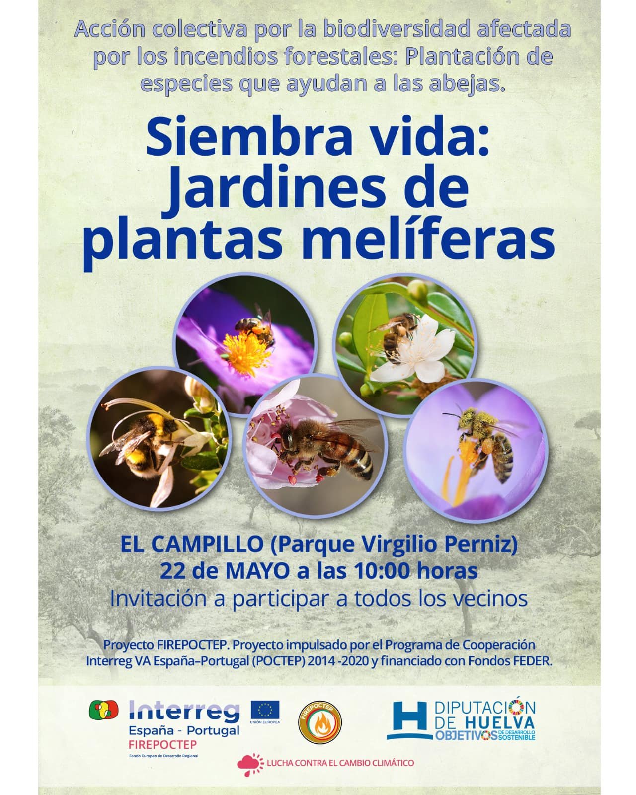 El Ayuntamiento de El Campillo ha hecho un llamamiento a través de sus redes sociales para que puedan participar en una actividad para proteger los espacios naturales, se llevará a cabo este domingo 22 de mayo y consistirá en la construcción de un jardín para polinizadores.