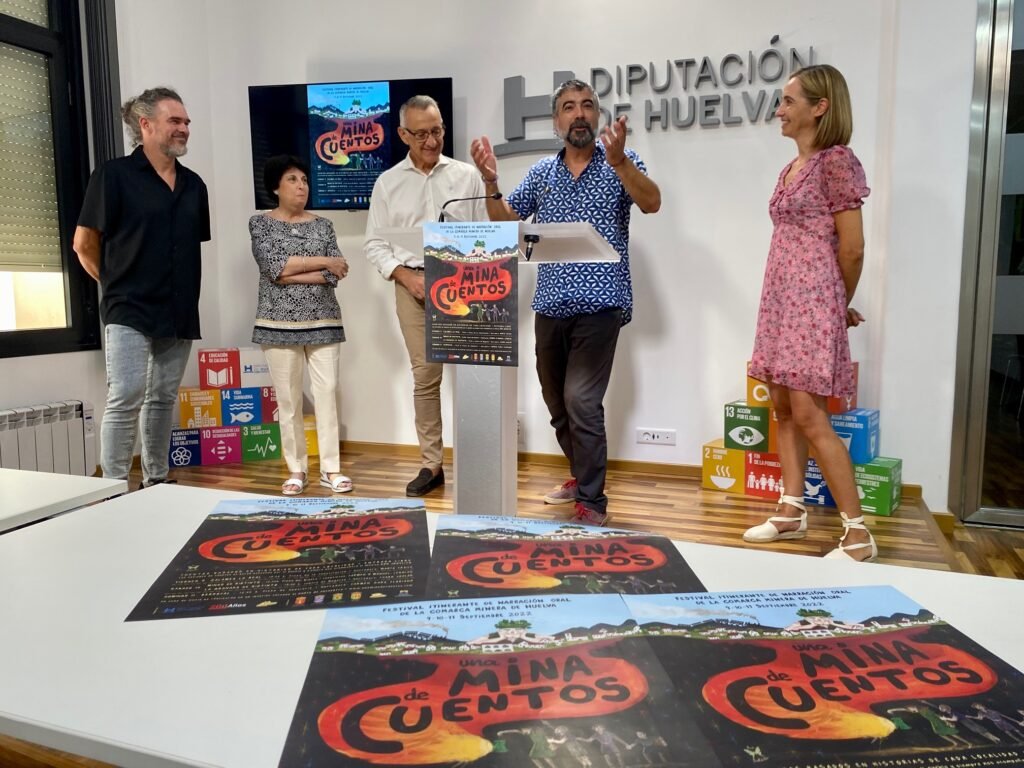 Cinco años después del comienzo del Festival de Narración oral ‘Un Andévalo de Cuentos’ y tras visitar todos los municipios de la comarca, un nuevo festival, hermano del anterior, recorrerá la comarca vecina, con el nombre de ‘Una Mina de Cuentos’. Zalamea la Real, Minas de Riotinto, La Granada de Riotinto y Berrocal acogerán del 9 al 11 de septiembre la primera edición del Festival, que ha sido presentado por el vicepresidente de la Diputación, Juan Antonio García y el coordinador del proyecto, Diego Magdaleno, junto a la alcaldesa de Berrocal y el técnico de cultura de Zalamea.