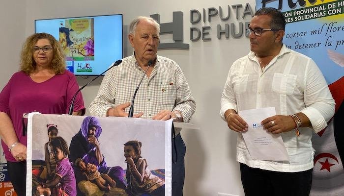 El diputado de Cooperación Internacional, Salvador Gómez, junto a los responsables de la Federación de Asociaciones Solidarias con el Sáhara de Huelva, ha presentado el programa, que la institución provincial apoya desde hace décadas, tanto económicamente -contribuyendo a los gastos de los vuelos de los menores a España-, como colaborando con la Federación en las actividades de la llegada a Huelva, reparto entre las familias y la despedida y partida de vuelta hacia los campamentos. El convenio destina 35.000 euros para ‘Vacaciones en paz’ y el envío de alimentos a los campamentos.