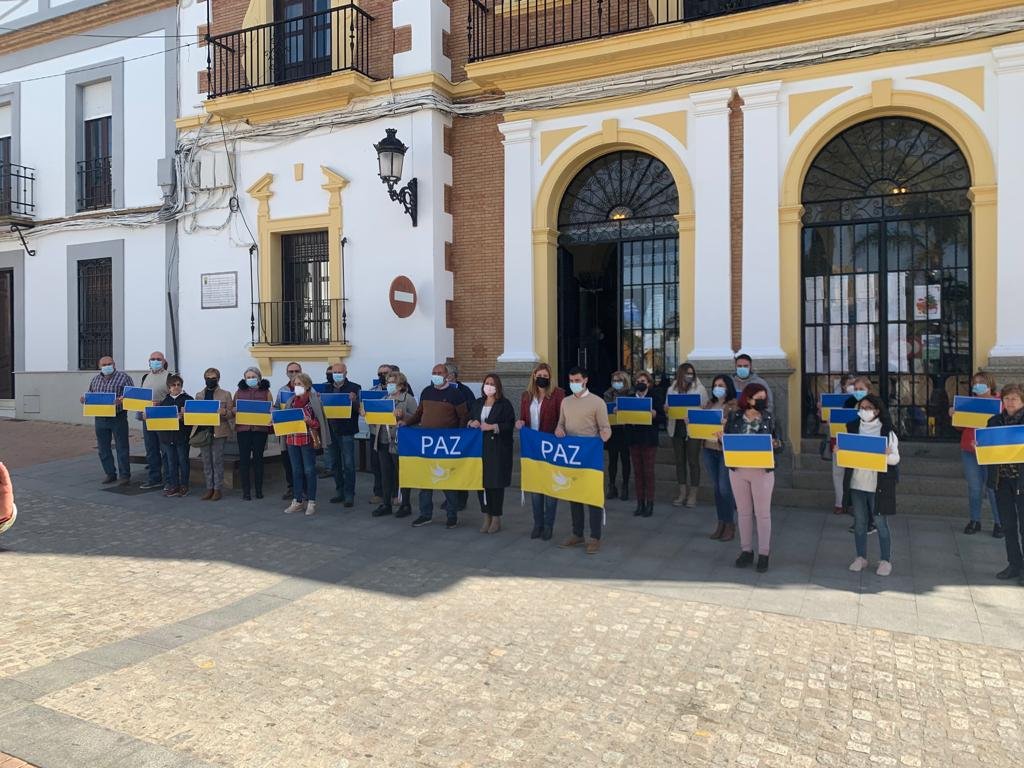 El Ayuntamiento de Valverde del Camino ha organizado una concentración de apoyo en favor del pueblo ucraniano en la que han leído un manifiesto:
