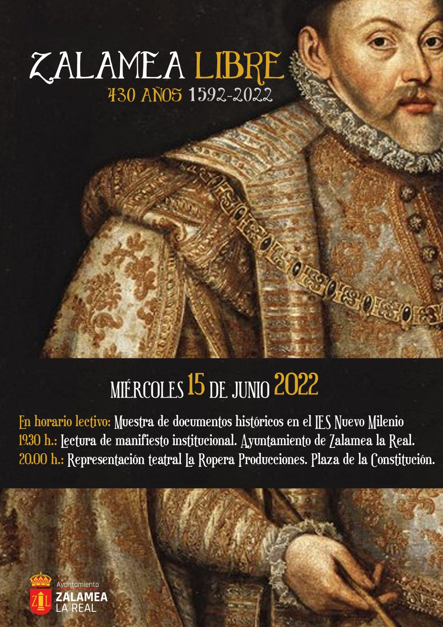 El próximo miércoles 15 de junio el municipio de Zalamea celebra el 430 aniversario de la consecución de la categoría de «villa de por sí y sobre sí», convirtiéndonos en villa libre sin estar adscrita al señorío temporal del Arzobispado de Sevilla.